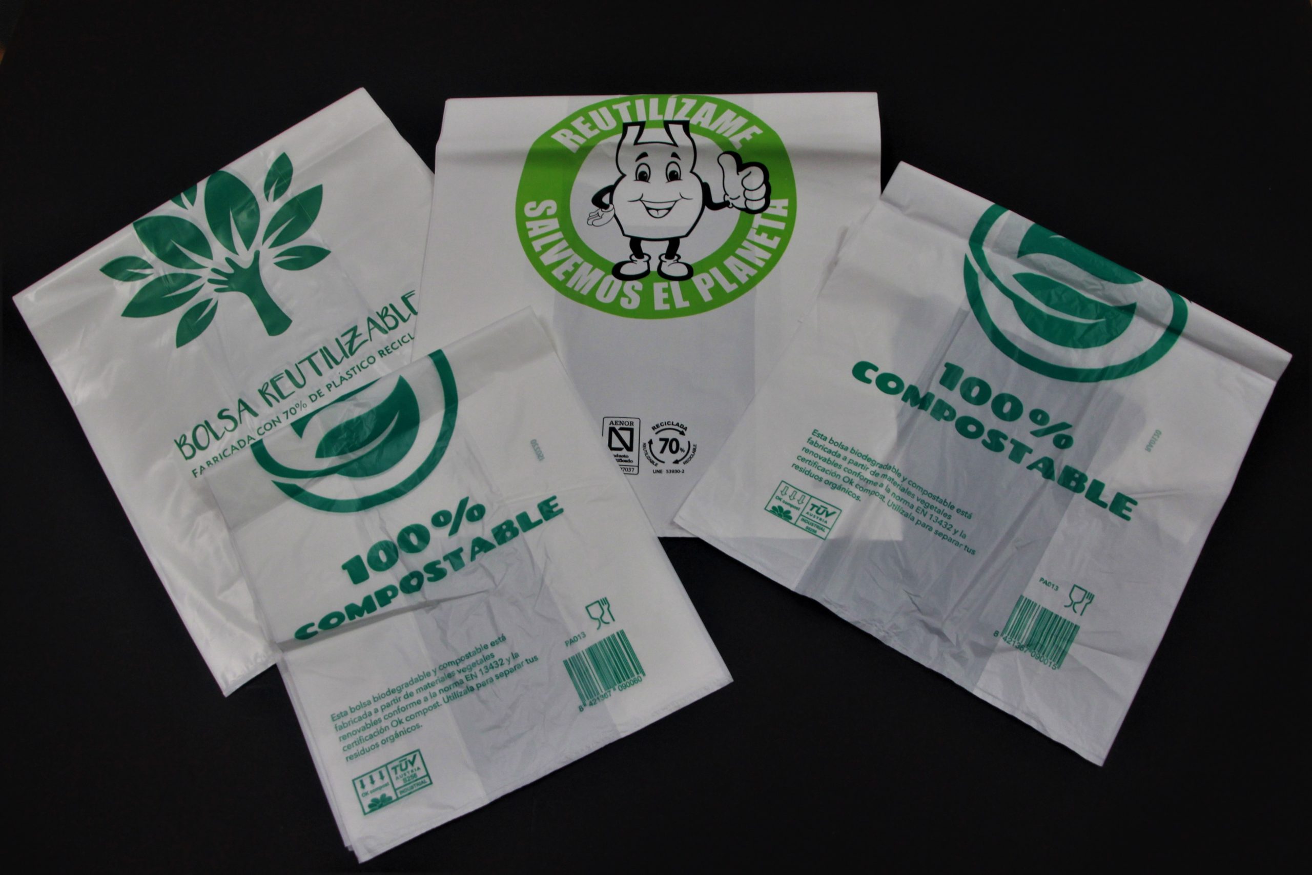 (BOLSAS COMPOSTABLES Y RECICLABLES PARA USO ALIMENTARIO. DISPONIBLE EN DIFERENTES TAMAÑOS)
